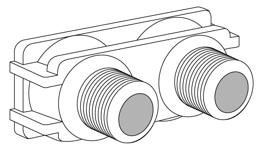 3/4" Noryl (fiber-reinforced polymer) yoke for Fleck brand control valves. The yoke acts as the connection between the control valve and the plumbing it’s connected to.