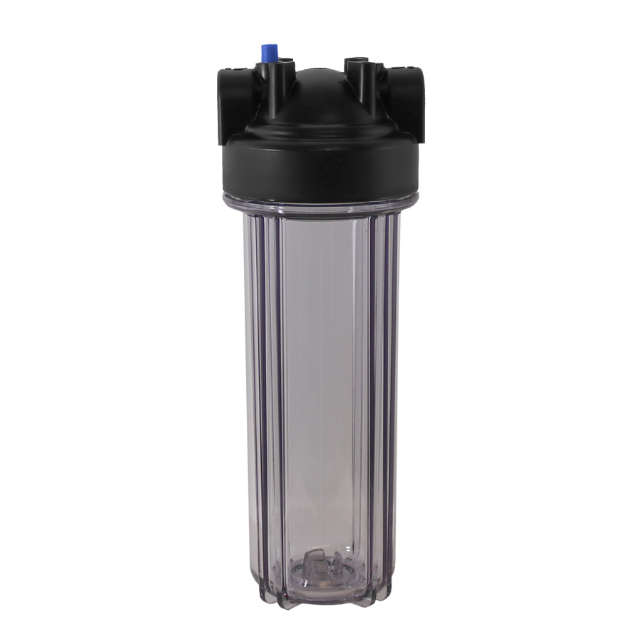 10″ Clear Water Filter Housing w/ 3/4″ Ports & Pressure Release Features: