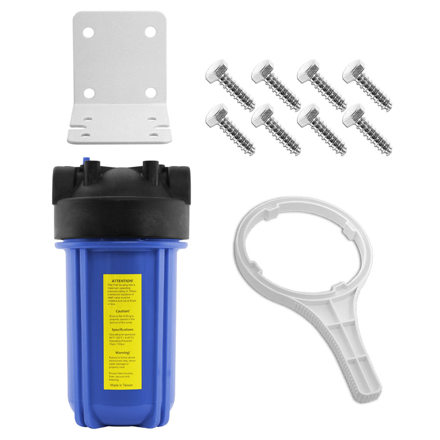 Blue 10″ x 4-1/2″ Sediment Filter Housing Kit Features: